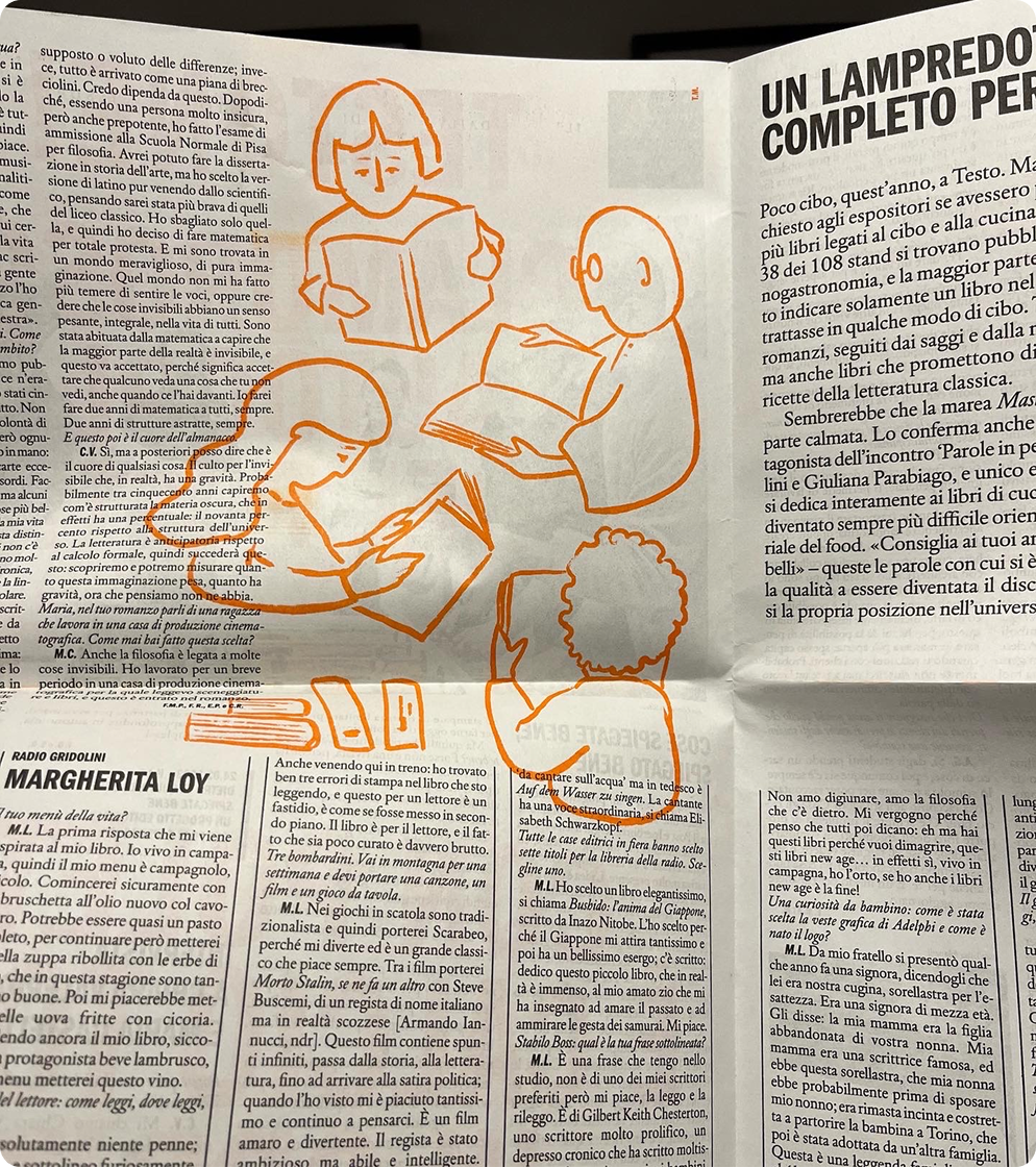 The daily was printed using the Risograph method. It was crucial to keep in mind the characteristics of this type of print to transform its limitations into potentiality. Hence, the choice to use bold and rough lines.