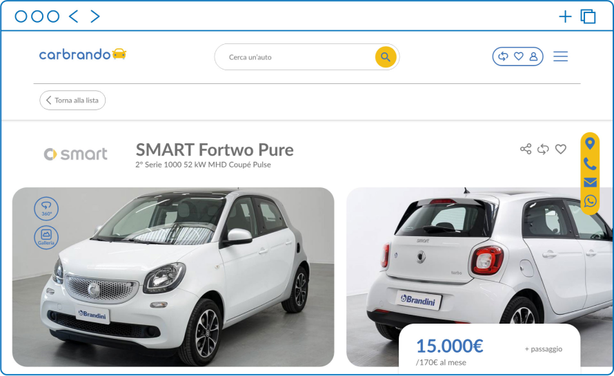 On the vehicle page, it is possible to see the car in all its details thanks to the large gallery