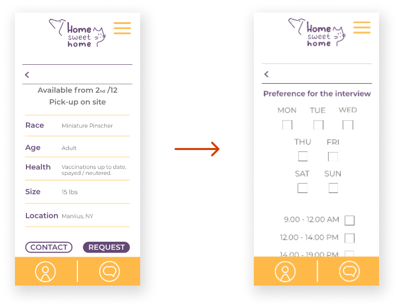 In the step following the application for adoption, I added a page for scheduling the interview.