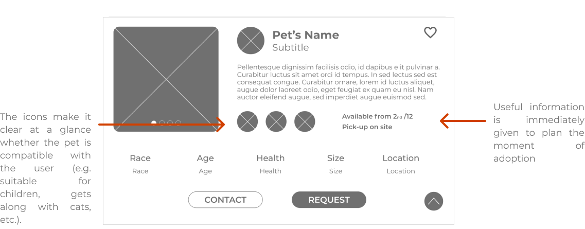 The pet presentation page is exhaustive and easy to read in order to ensure the user is safe in the selection phase.